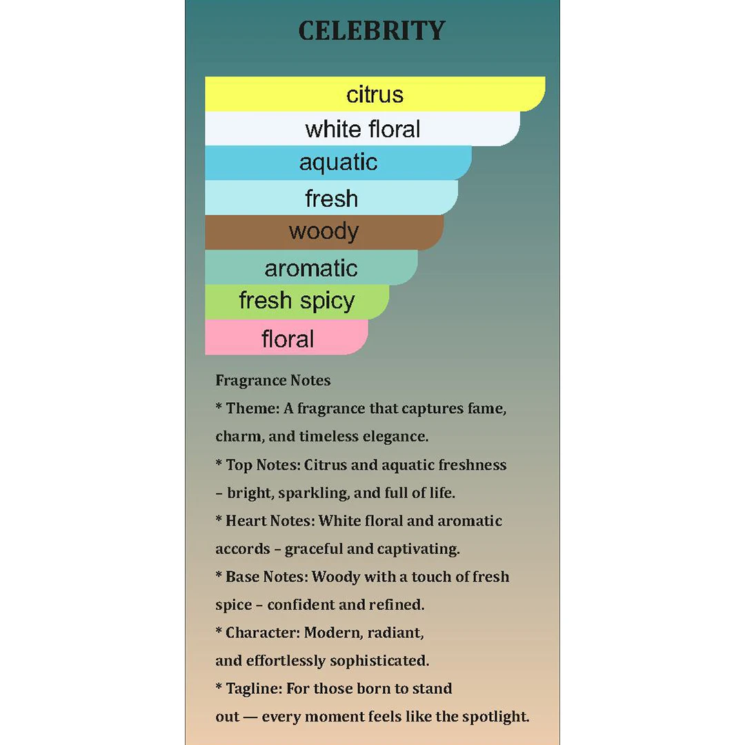 A celebrity doesn't whisper; they command. This fragrance is an olfactory amplifier designed for those who thrive in the spotlight, whether you're at an exclusive rooftop bar, a black-tie event, or the most talked-about gathering of the year.